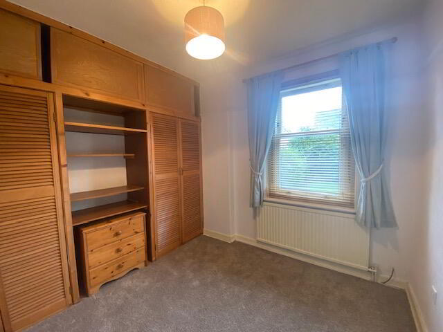 There are two bedrooms: a generous double room to the front with mirrored wardrobes, inbuilt storage and bedroom furniture; and a good-sized single/small double to the rear, also with inbuilt storage. Both rooms are double glazed.